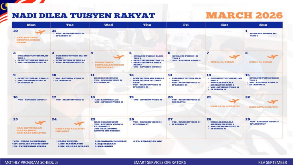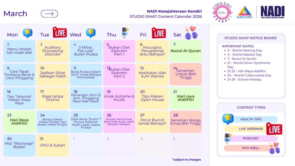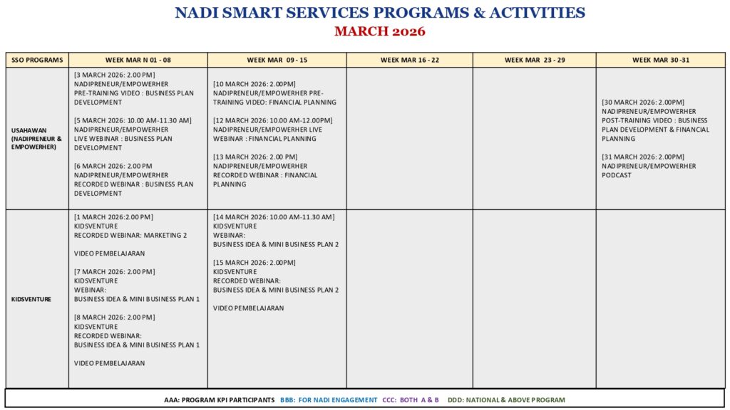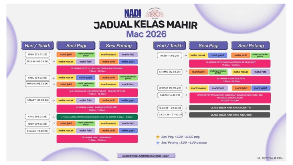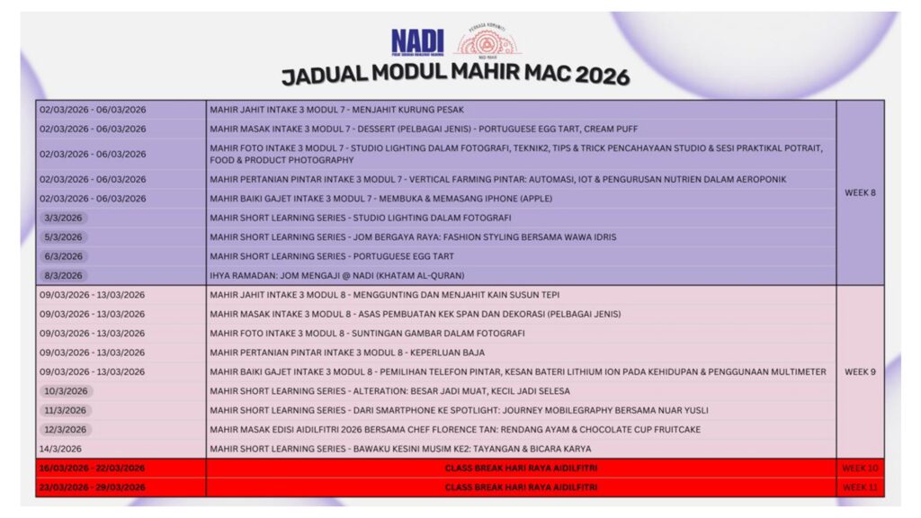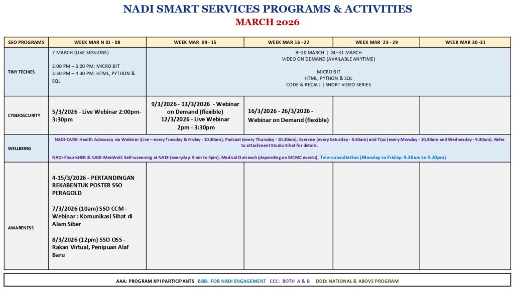 JADUAL AKTIVITI NADI SERDANG BULAN MAC